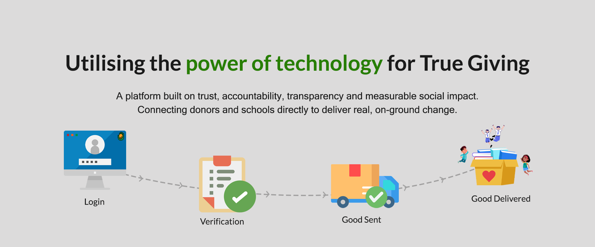 TrueGiv is a platform that connects companies (for CSR funding) and individual donors, philanthropists, directly with schools in rural India. We ensure every child gets the tools to learn by linking donors to verified education projects.